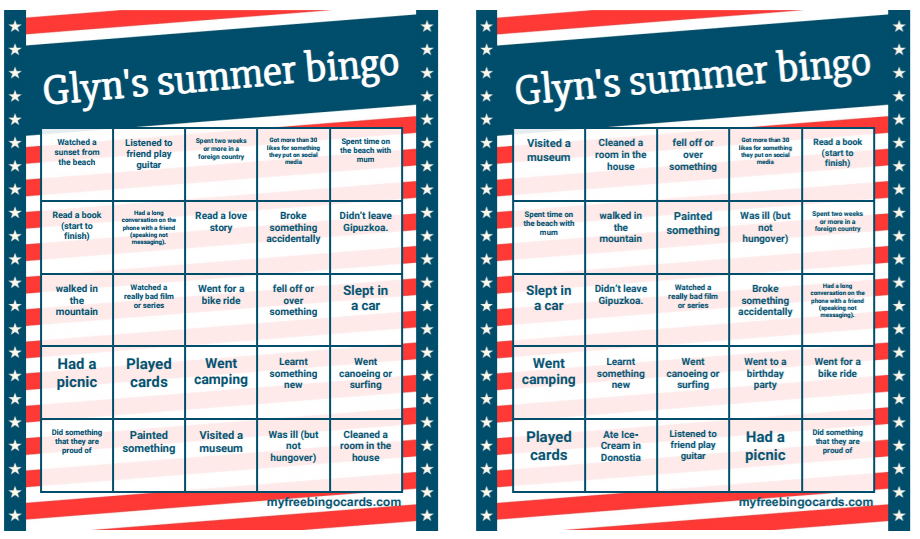 These cards were prepared specifically with my students in mind so there are some local references to Gipuzkoa and Donostia in some of the criteria; but you could easily recreate your own sets using the same website. Below is a copy-pasteable list of the the different criteria I used just in case it is useful for anyone.