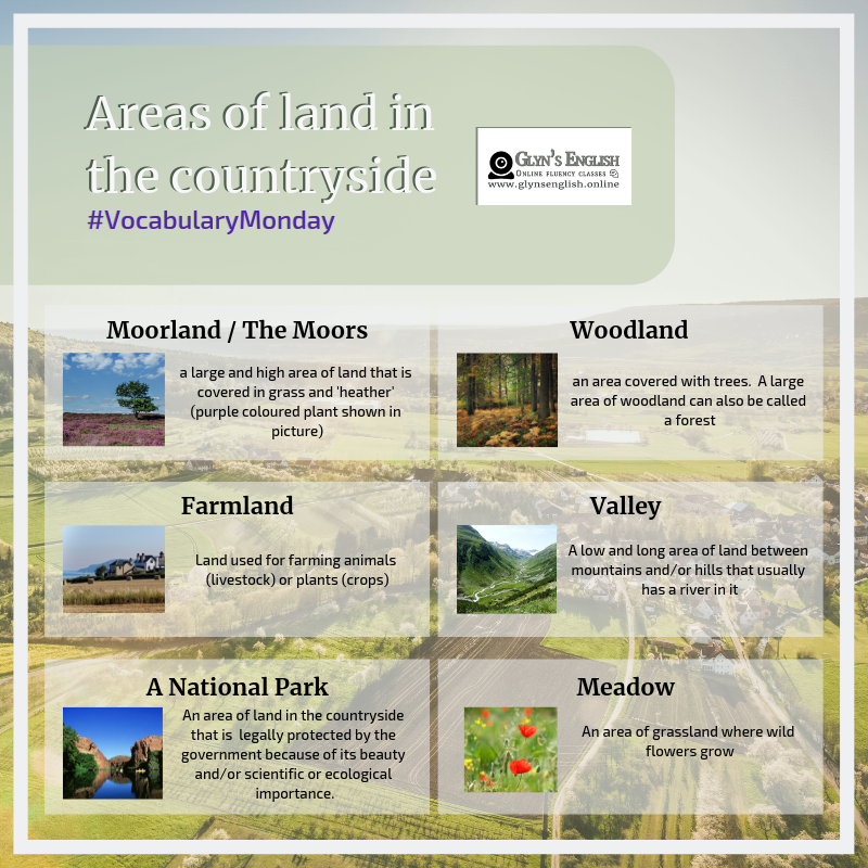 After exploring useful language related to talking about towns and cities as well as shops and shopping in them, this week we’ll explore the vocabulary topic of the countryside.